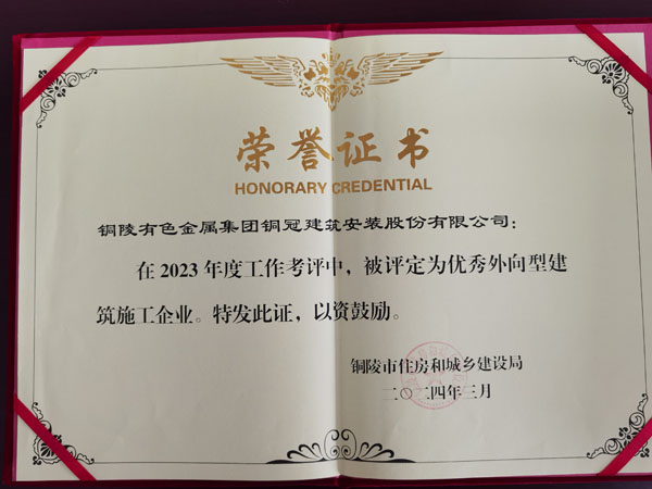 铜陵市优秀外向型建筑施工企业(2023年...
